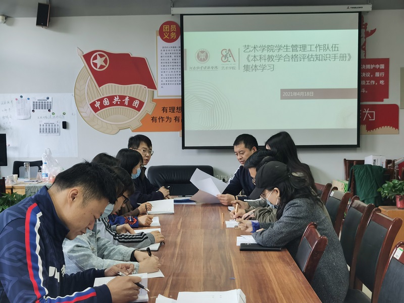 首先,王友峰书记向大家解读了我校《本科教学工作合格评估自评报告》,报告从学校概况、本科教学工作情况、存在问题与改进措施三大方面展示了学校合格评估的各项数据、材料。王友峰书记重点带领我院学生管理工作队伍学习了学校概况、办学思路、学风建设与学生指导、德育、就业等方面的内容,要求大家熟悉掌握我院学生所学的专业课程、课程大纲、人才培养方案。随后大家又一起学习了《太阳集团tyc4633本科教学工作合评估汇报》,报告中指出,我院实施德育为先,全面深化课程思政的课程教学模式改革,以学生为中心,形成一课一展、以赛促学、项目引领、专业工作室相结合的“四位一体”的教学模式。