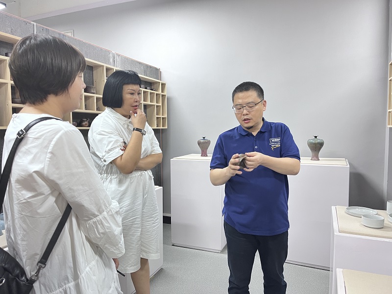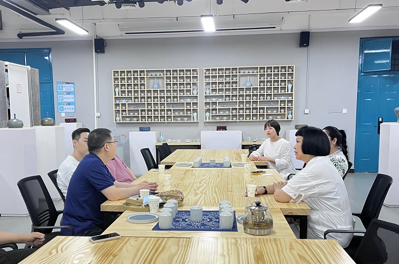 座谈会结束后,张鹏院长陪同企业领导参观了太阳集团tyc4633陶瓷创研中心、木板年画展厅、工作室等。