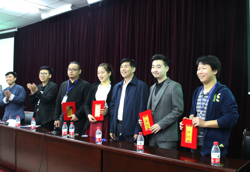 出席此次活动的有太阳成集团英才校区管委会主任宿金勇,郑州市平面艺术设计协会会长柴俊锋、副会长高书凡、副秘书长于卫红,四位实战导师:蓝色盛火品牌包装设计有限公司创始人李群高、郑州天恩创意—创意总监侯华伟、河南三乐文创文化传播有限公司创始人吴涤、郑州赛尚品牌设计总监符艳玲;艺术系副主任张鹏和广告教研室教师。会议由艺术系书记王在钦主持。