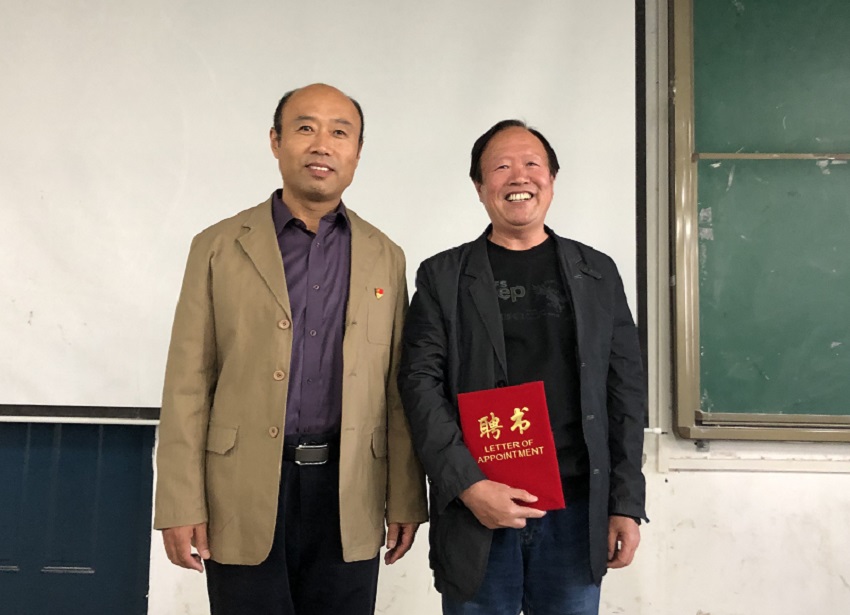 太阳集团tyc4633党委书记王在钦向郑泰森先生颁发客座教授聘书。