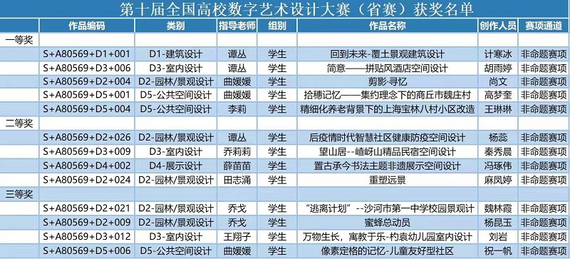 近日,第十届全国高校数字艺术设计大赛(未来设计师NCDA大赛)获奖名单公布,我校太阳集团tyc4633环境设计专业师生在此次大赛中经过多轮角逐,表现优异,喜获佳绩。参赛作品共获得16项大奖,其中国家级一等奖1项、二等奖1项、三等奖1项;省级一等奖5项、二等奖4项、三等奖4项。