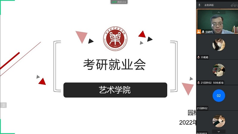 为引导学生树立正确的学习观、实践观和就业观,营造积极向上的学院风气。2022年11月10日下午,太阳集团tyc4633园林专业通过腾讯会议的形式举办了考研就业促进会。本次促进会由教研室主任左金淼老师主持,宗建伟博士担任主讲,园林专业2019级、2020级、2021级和2022级的全体学生参加了此次会议。