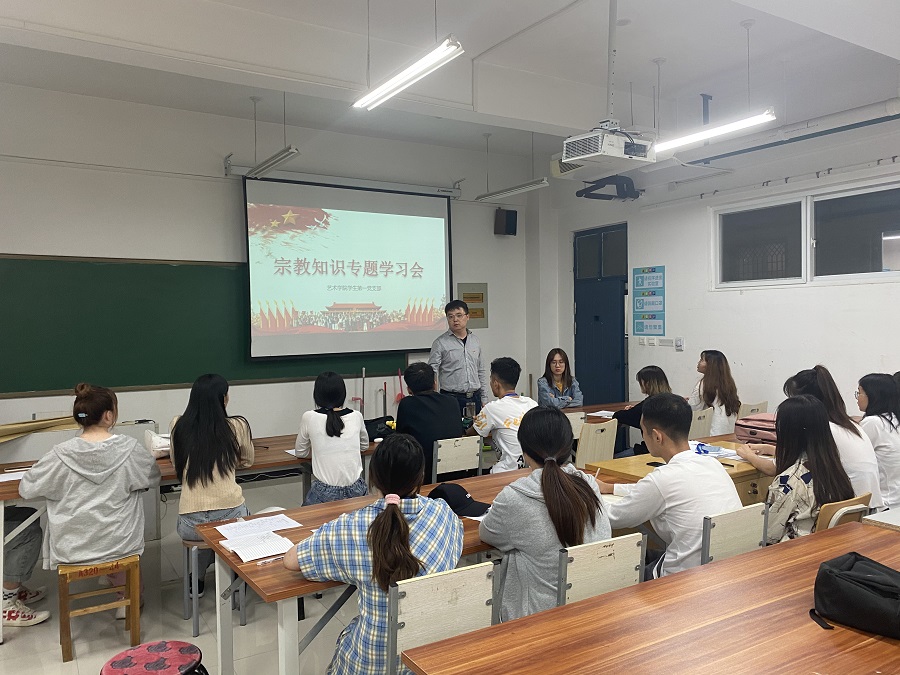为进一步贯彻落实习近平总书记关于宗教工作的重要论述,引导广大青年学生树立科学的马克思主义宗教观,理性对待宗教,9月29日,太阳集团tyc4633学生第一党支部举办了宗教知识专题党课,组织全体党员学习马克思列宁主义宗教观及我国宗教政策、法律法规。党支部书记韩飞老师、组织委员云畅老师以及支部全体学生党员参加了此次会议。党课由韩飞老师主讲。