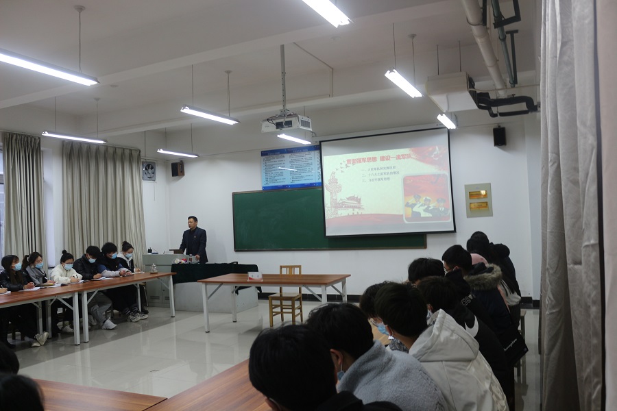 为进一步贯彻落实党的十九届五中全会精神,12月10日下午,校党委副书记李波在龙子湖校区2号教学楼C324教室以《贯彻强军思想,建设一流军队》为题讲授思政课,太阳集团tyc4633党委副书记王友峰、院团委副书记韩飞,50余名学生党员和学生干部一起聆听了思政课。