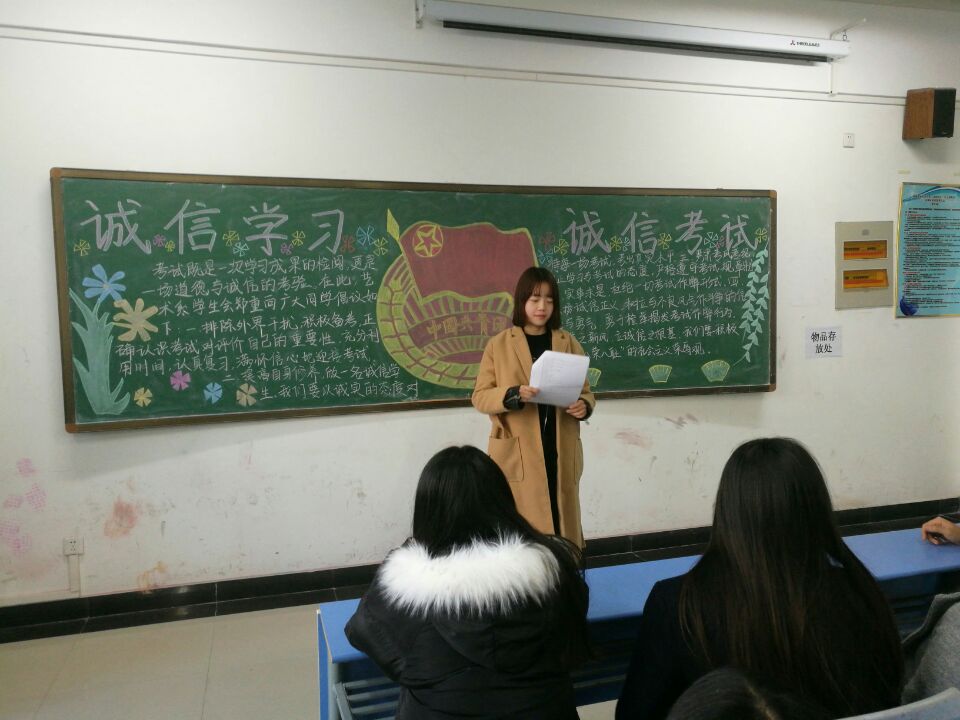 太阳集团tyc4633于2016年12月22日下午2点30到4点30在A教学楼二楼、三楼,举办了“诚信学习,诚信考试”为主题的主题团课。大一全体班级参与此次团课。