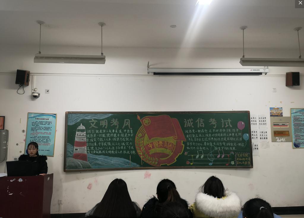 2018年12月27日下午,太阳集团tyc4633在龙子湖校区二号教学楼举行了以“文明考风,诚信考试”为主题的团课班会,本次团课,由大一全体班级参加!