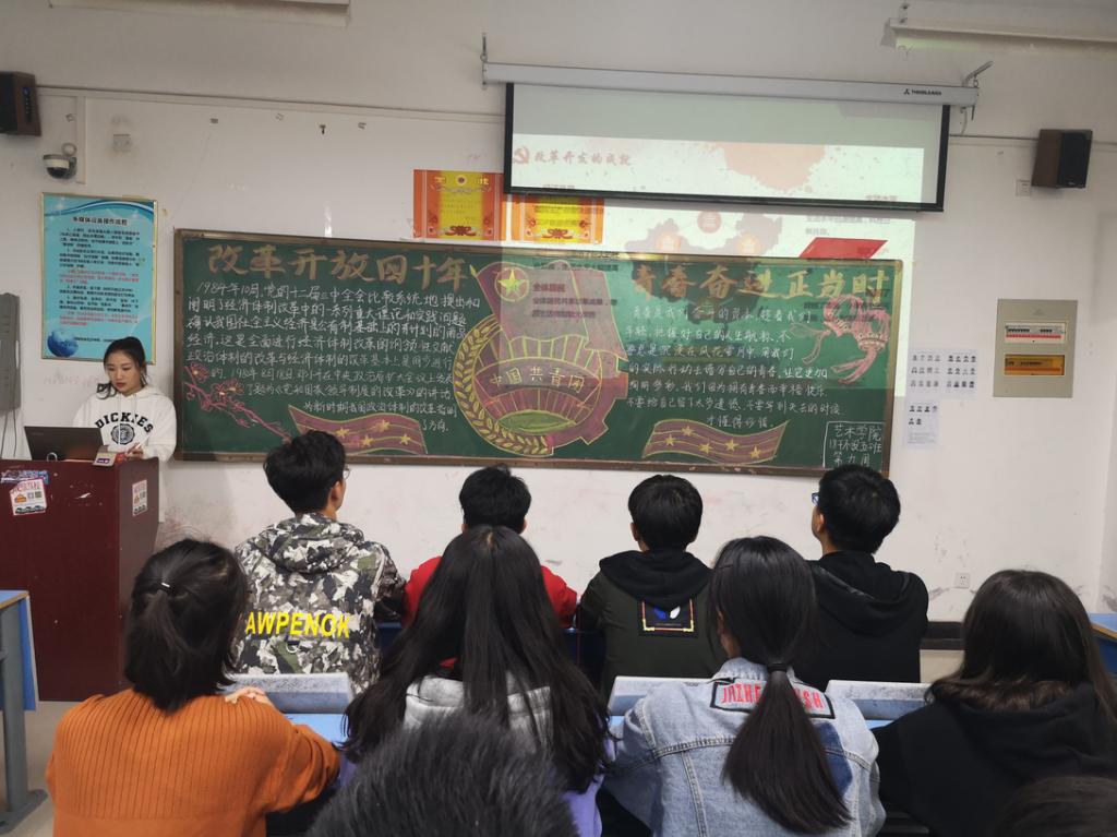 2018年11月1日下午7:00——8:00,太阳集团tyc4633在龙子湖校区一号教学楼举行了以“改革开放四十年,青春奋进正当时”为主题的团课,本次团课由大一全体班级参加!