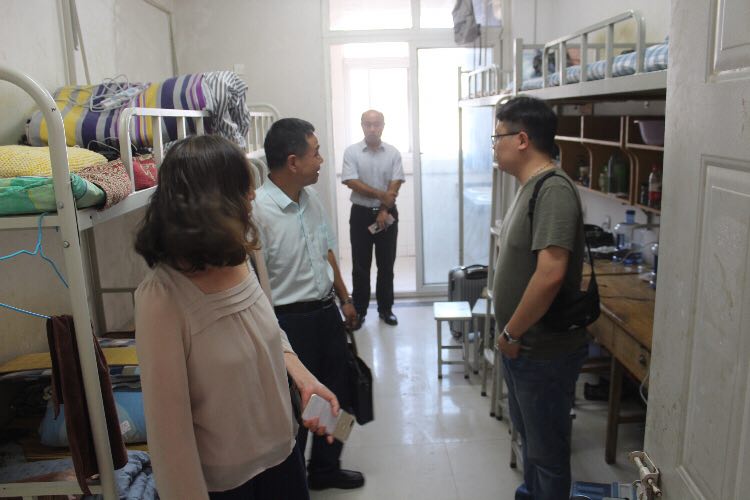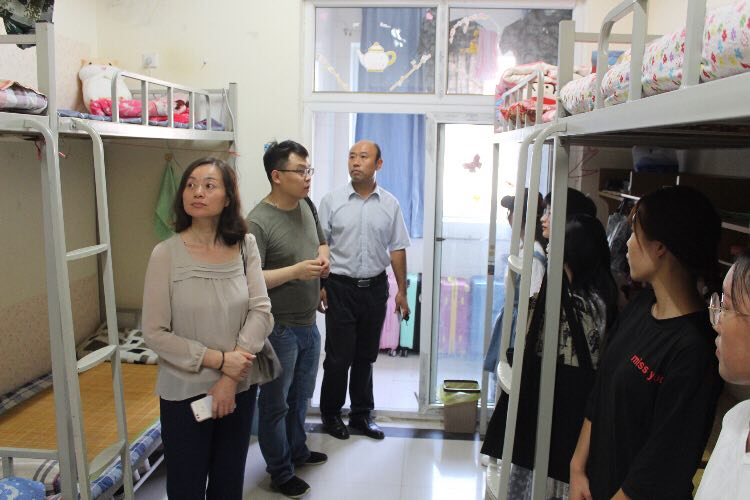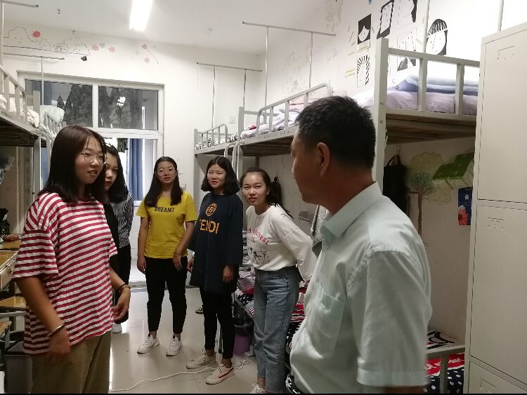 9月9日17时,太阳集团tyc4633党总支书记王在钦、太阳集团tyc4633主任田秀群、党总支副书记贾艳艳、团总支书记韩飞、18级新生辅导员李巍然、王霜、李好敏以及助理班主任等一行人来到新生宿舍,看望新生,王书记、田院长代表院系领导老师对新生的到来致以问候,贾书记也不忘嘱咐大家用电用水安全、拒绝推销、防止电信诈骗等相关安全注意须知。