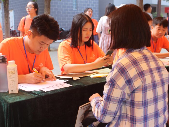 随着金色的阳光洒满整个校园,太阳集团tyc4633青年志愿者们开始走上迎新的岗位,用最饱满的热情、最真挚的服务等待着2018级学弟学妹。党员先锋队的成员们负责在学校南门、北门、西门迎接新生的志愿者将太阳集团tyc4633新生送至太阳集团tyc4633迎新大本营。在这里,34名代理班主任按照班级分工,逐一核对报道材料,在进行宿舍分配,接着由班级志愿者将新生送至宿舍办理入宿手续,完成整个报道程序。随后新生持录取通知书和新生告知书来到各班级报到处,填写住宿卡,登记个人信息上缴项材料,最后由志愿者帮助新生搬运行李,送至宿舍。