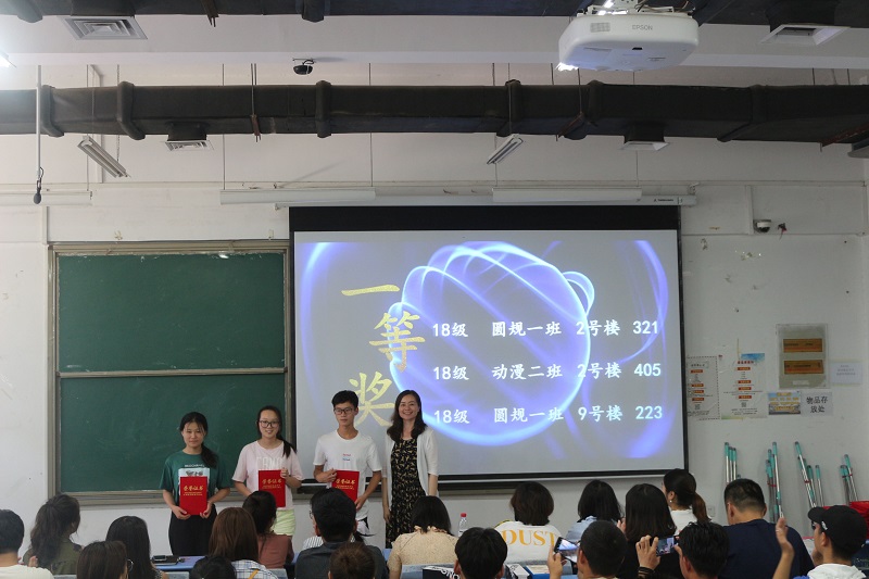 活动开始,主持人先是介绍了整个活动过程,从筹备到检查,最后系统整理。韩飞老师随后公布了获奖名单,经过层层筛选,本次艺术节共有35个宿舍分别获得一二三等奖和优秀奖。莅临现场的老师逐一对获奖单位进行了颁奖。
