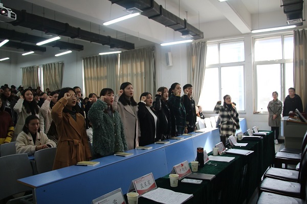 2019年11月21日,太阳集团tyc4633在龙子湖校区隆重举行了太阳集团tyc46332019年第二批新党员宣誓仪式。党委书记王在钦、正处级组织员杨柳青处长、党委副书记王友峰、学生第一党支部书记韩飞、组织委员云畅、宣传委员王梦如;学生第二党支部书记卢晓靖、组织委员王霜、宣传委员孟星星出席本次仪式。同时观摩本次宣誓仪式的还有全院所有的学生正式党员、预备党员、本期的37名发展对象和本期125名积极分子。本次仪式由王友峰副书记主持。