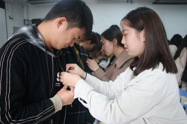仪式最后一项内容是王在钦书记讲话,他首先对所有参加宣誓的新党员表示祝贺,随后对所有参加本次仪式的学生党员、预备党员、发展对象、积极分子提出三点希望:一是要努力学习,不仅仅努力学习思想政治理论,也努力学习科学文化知识;二是要争做榜样,在学习、工作、生活各方面敢于亮身份,勇于做表率,发挥学生党员的先锋模范作用;三是要勇于奉献,把全心全意为人民服务落在实处,全心全意为师生服务,不忘初心,牢记使命,不尚空谈,多干实事,在学生时代谱写美丽篇章。