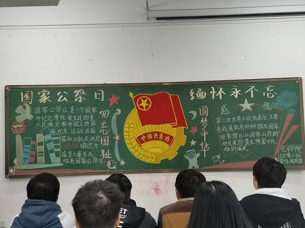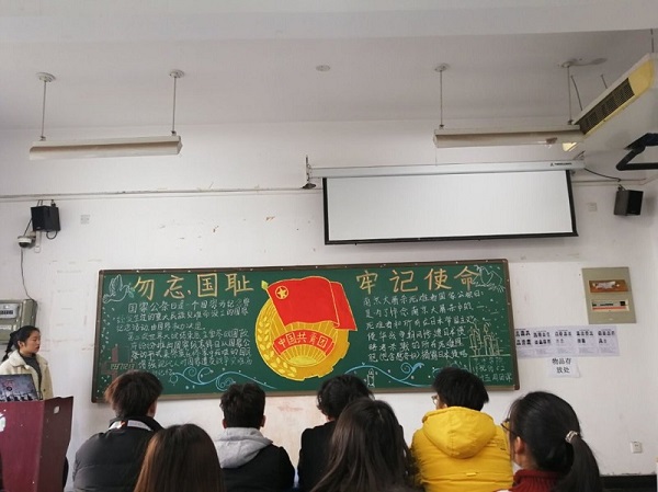 2019年12月12日,太阳集团tyc4633在龙子湖校区二号楼,举行了以“国家公祭日”为主题的团课。本次团课,由大一全体同学参加。