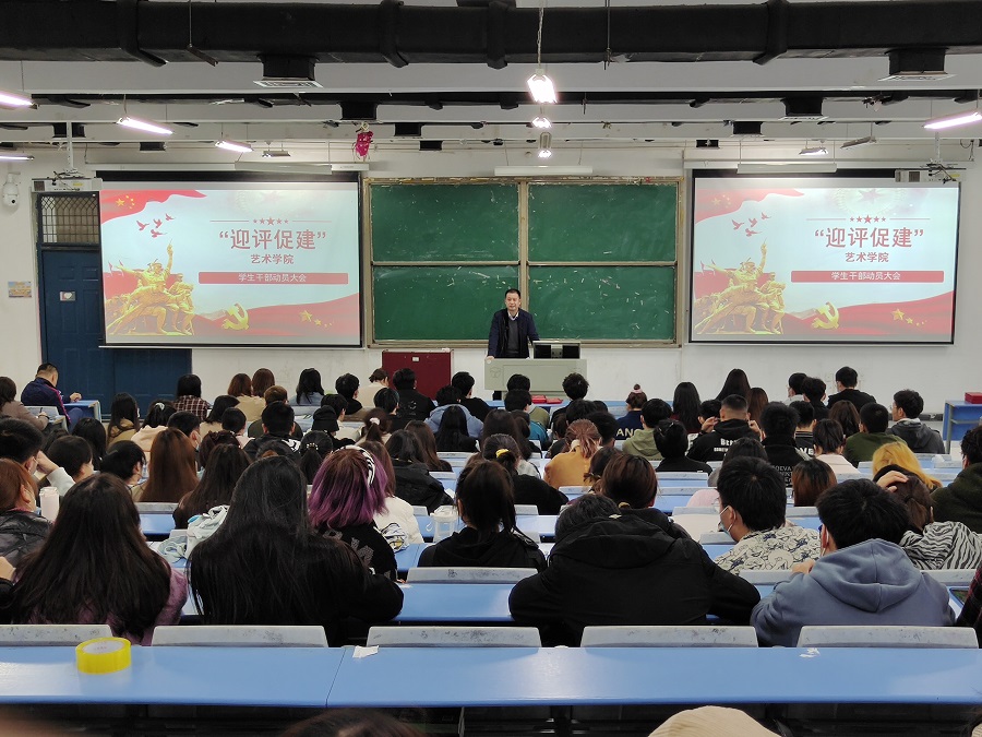 为全力迎接我校本科教学工作合格预评估,展现我院学生良好的精神风貌,2020年11月19日,太阳集团tyc4633在一号教学楼合300教室召开全体学生干部动员大会,参加会议的人员有院党委副书记王友峰、团委副书记韩飞,全体辅导员和200名学生干部。会议由韩飞老师主持。