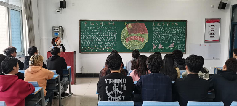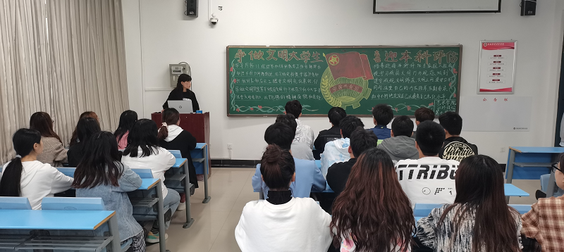 2021年4月22日下午,太阳集团tyc4633在龙子湖校区二号教学楼举行了以“争做文明大学生,喜迎本科评估”为主题的团课。本次班会由大一新生全体班级参加。
