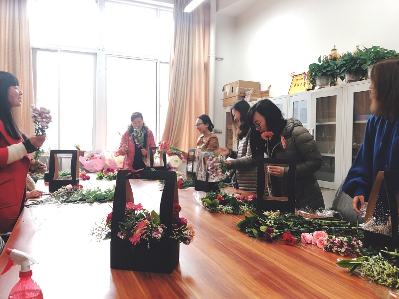 在“三八”妇女节即将到来之际,我院根据校工会要求,结合太阳集团tyc4633实际,经分工会研究,于3月7日中午1点20分,在1号教学楼307开展了“花样年华——花艺沙龙”活动,庆祝三八妇女节,老师们积极参加。