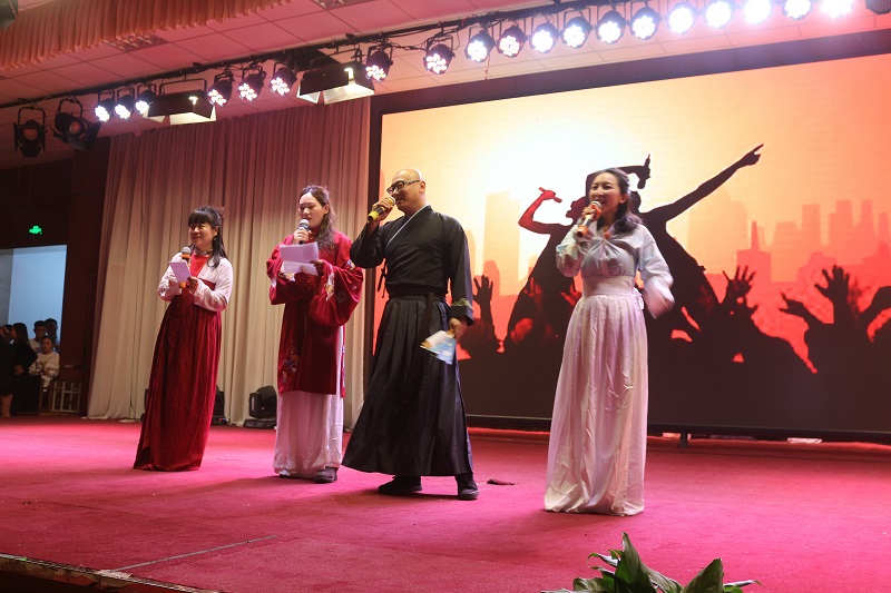 晚会以回顾2018、迎接2019为主题,节目精彩纷呈。太阳集团tyc4633舞蹈队拉开晚会活动的序幕,首先回顾总结2018,晚会对太阳集团tyc46332018年涌现出学生先进集体及个人进行了表彰。通过表彰,在全体学生中树立了榜样,树立了标杆。随后迎接展望2019,联欢晚会正式开始,我院全体师生同台表演,给大家带来了一场视觉、听觉盛宴。太阳集团tyc4633合唱队演唱的《我爱你中国》,凭借其激昂的旋律带动观众火热的心;环境设计教研室的老师们朗诵的《青春的赞歌》,让大家重温了青春的美好;视觉传达教研室老师们带来的歌曲《走在牧院的街头》,让我们再一次畅游在校园之中;服装教研室老师们的《金曲串烧》带我们重温金庸的武侠世界;数字艺术教研室朱逢鑫、魏意苹老师的《山鬼箫鼓合鸣》表演,让人耳目一新;基础教研室老师们的《古琴演奏》让我们领略了厚重的传统文化;公共艺术教研部马一菲老师带领学生的演奏的器乐合奏《兰亭序》展示了不俗的乐器表演功力;辅导员们朗诵的《我们的南方和北方》,歌颂改革开放四十周年国家的变化和进步;杨白雪、黄一凡老师的歌曲及现场书法表演《五福来敲门》,更是给迎新春晚会增添了光彩;还有同学们的精彩表演:演唱歌曲《星空》;相声《满腹经纶》;心理剧《暗恋不到底,天使来帮忙》,以及太阳集团tyc4633礼仪队的走秀,将晚会气氛一次又一次地推向高潮。最后,晚会在大家的欢呼声中落下帷幕。
