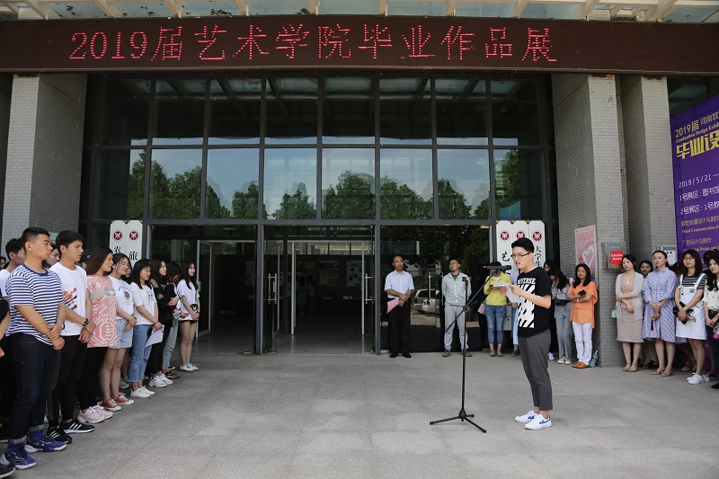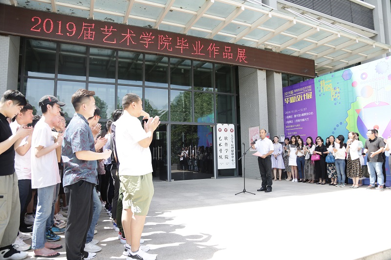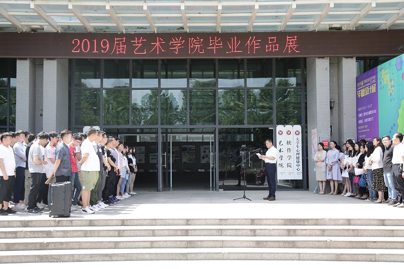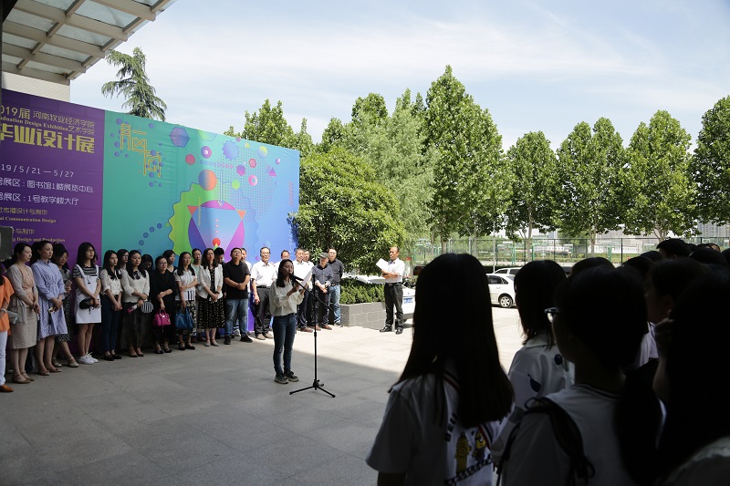 5月21日上午,太阳集团tyc46332019届毕业设计作品展开幕式在龙子湖校区1号教学楼门前广场顺利举行。太阳集团tyc4633班子成员、教师代表以及2019届毕业生500余人参加,太阳集团tyc4633党总支书记王在钦主持开幕式并宣布展览开幕。