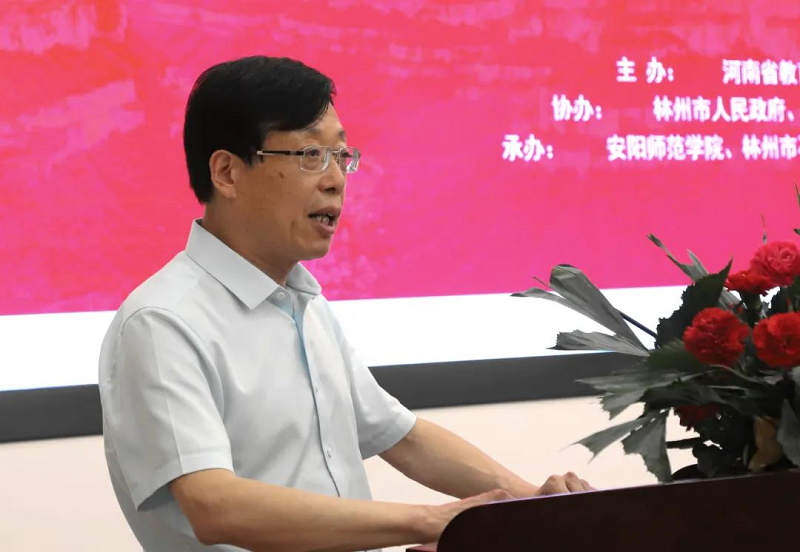 中国美术家协会主席、中央美术学院院长范迪安,河南日报社党委委员、副总编辑张学文,中国国家画院研究员、中国中国画学会副会长、河南省美术家协会名誉主席马国强,河南省文联副主席、省美术家协会主席刘杰,中国国家画院研究员、中国油画学会名誉理事、河南省书画院原院长曹新林,河南省美术家协会顾问、教育艺委会主任马岭,安阳师范学院党委书记纪多辙,河南省学校艺术教育协会会长、郑州轻工业大学易斯顿美术学院院长石品,河南省美术馆馆长于会见,林州市委副书记、代市长田元飞,大河美术报董事长熊飞等出席开幕式。开幕式由省教育厅体卫艺处处长聂世忠主持。全省60余所高校美术、设计学院代表,以及美术界、美术教育界特邀嘉宾,中央美术学院等省外院校负责人和专家学者共130余人共聚一堂,就“红旗渠精神在高校美育中的融合”“积极落实‘设计河南’战略,提升高校专业建设服务社会经济发展的能力”等议题进行深入交流探讨。