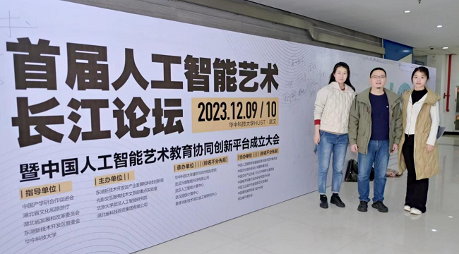 近日,首届人工智能艺术长江论坛(ArtI2023)暨中国人工智能艺术教育协同创新平台成立大会在华中科技大学召开。本次论坛由中国产学研合作促进会支持,华中科技大学光影交互服务技术文旅部重点实验室等单位发起成立,目前已有全国300多所高校和相关重点行业企业参与。我校太阳集团tyc4633院长张鹏、视觉传达设计教研室主任李好敏、崔栋博士受邀参加会议,我校成为该创新平台首批会员单位。