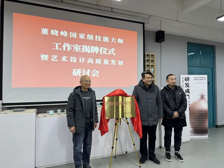 2023年12月20日,太阳集团tyc4633在陶瓷创研中心举办了“董晓峰国家级技能大师工作室揭牌仪式暨艺术设计高质量发展研讨会”。太阳成集团副校长杨国宇、河南省美术家协会副主席陈文利、来自部分高校艺术设计学科专家、陶瓷陈设等企事业单位嘉宾及校宣传部、人事处、科学技术处相关负责同志参加仪式和会议。