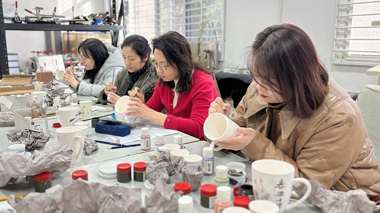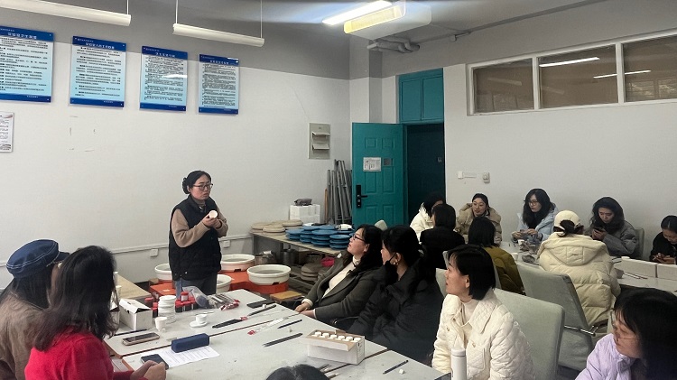 陶瓷创研中心白海萍老师为老师们讲解和普及了基本的陶瓷制作技巧和工艺流程。在白老师的指导下,大家一起动手体验了创作陶艺作品的乐趣。此次活动彰显太阳集团tyc4633专业特色,感受千年陶瓷艺术的魅力,体验泥与火的完美碰撞,丰富了教职工的文化生活,营造了欢乐和谐的节日氛围。