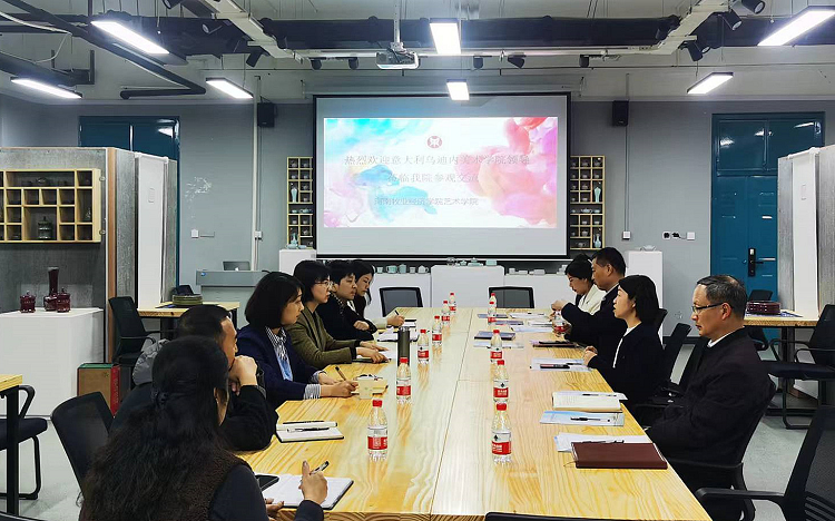 杨晓翠女士对我院的热情接待表示感谢,并对乌迪内美术学院的历史背景、教学特色及国际合作项目进行了详细介绍。她指出,意大利与中国在艺术领域有着丰富的合作基础,希望通过此次访问,进一步加强两校之间的学术交流与合作,共同推动艺术教育的创新发展。交流活动中,双方就艺术教育课程设置、教学方法、学生交流项目等方面进行了深入探讨。田志涌副院长分享了我校太阳集团tyc4633的教学理念和成果。闫杰副院长分享了我院在校企合作,社会服务、学生实践等方面取得的成绩。特别是陶瓷艺术专业的创新实践,董晓峰大师则展示了他的陶瓷作品,其精湛的技艺和独特的艺术风格赢得了意大利客人的高度评价。