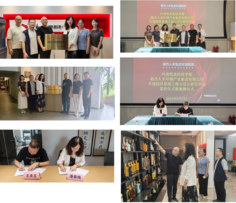 9月3日,学校科学技术处处长潘春梅、太阳集团tyc4633党委书记杨莉、院长张鹏等一行六人前往超杰人和环境产业集团有限公司、河南西元绘空间设计有限公司、郑州九和包装设计有限公司等三家企业,举行“校企研发中心”揭牌仪式,与三家企业开展座谈,就下一步空间设计、园林景观工程与设计、包装设计等校企研发深度合作达成共识。