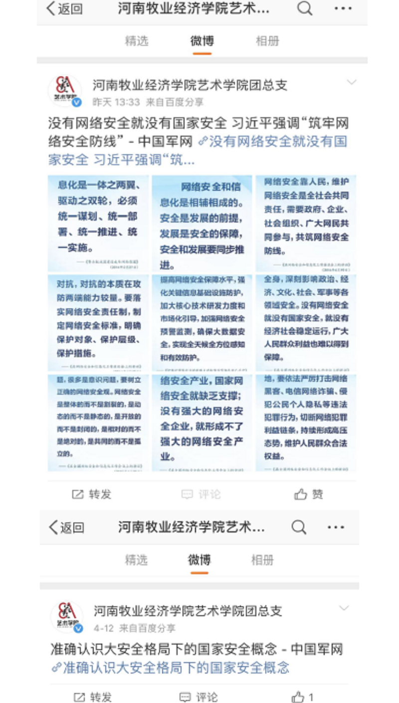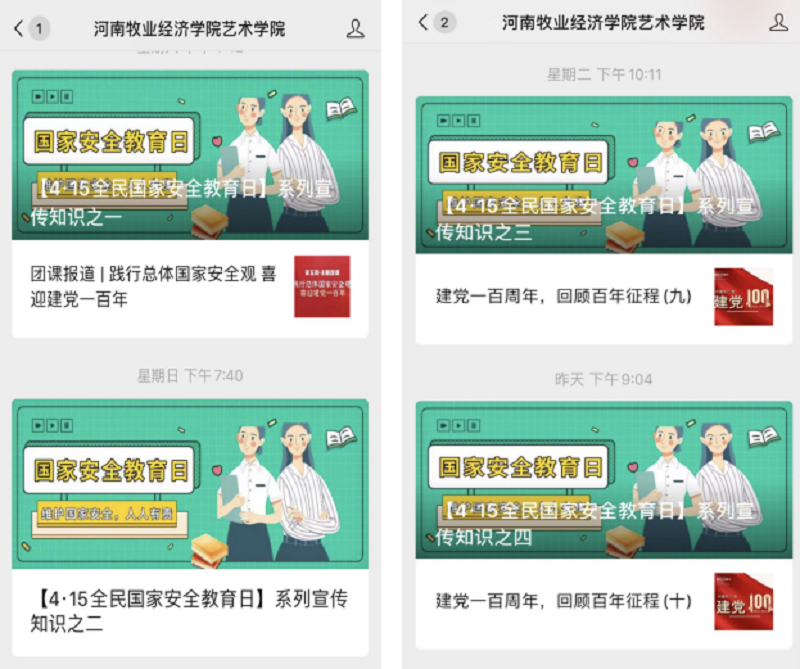 为不断增强太阳集团tyc4633学生国家安全意识和法治意识,构建大安全格局,我院开展了一系列国家安全教育宣传活动。首先,在我院微信公众号、微博推送相关系列文章,图文结合,生动形象地诠释什么是国家安全,强化同学们的安全意识;其次,我院组织了以短视频、诗歌、散文、摄影等形式的相关活动,让同学们参与其中,将优秀作品推送给学校,并取得不错的成绩;最后,我院学管老师们开展国家安全教育主题班会,明确安全教育的重要性。