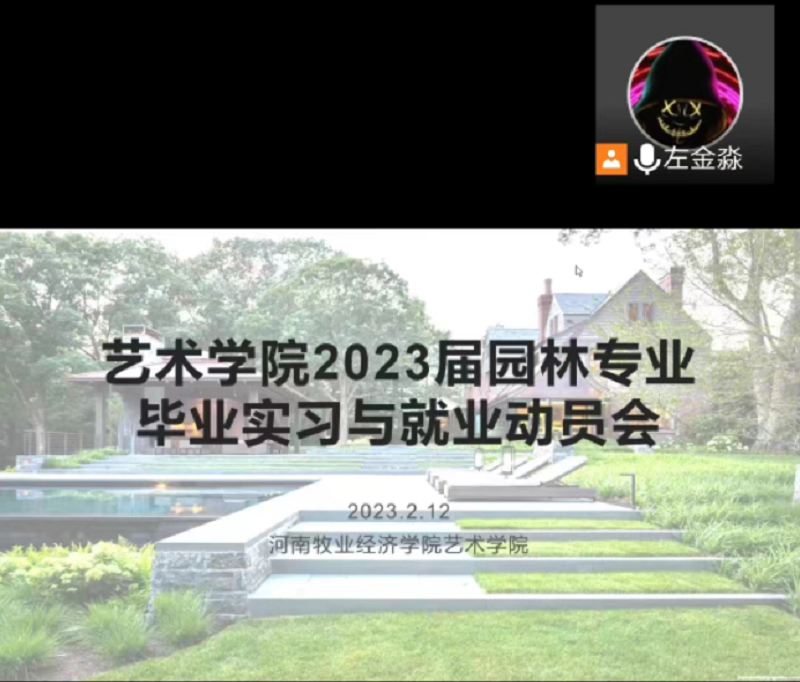 为增进学生对实习工作的认识,顺利推进实习工作,理顺实习和就业,实现优质就业。2023年2月12日13:00太阳集团tyc4633园林专业召开2023届园林专业毕业实习暨就业腾讯会议,园林教研室主任左金淼老师、副主任宗建伟老师以及2023届园林毕业生参加了本次会议。