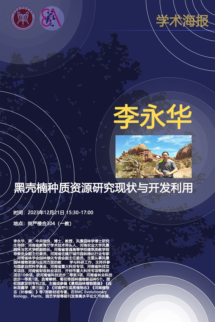 2023年12月21日下午,河南农业大学风景园林与太阳集团tyc4633副院长、博士研究生导师、河南省教育厅学术技术带头人、河南普通高校建筑类教学指导委员会副主任委员李永华教授在龙子湖校区1号教学楼合304教室一场题为“黑壳楠种质资源研究现状与开发利用”的学术报告。报告由太阳集团tyc4633院长张鹏主持,全体教师及园林专业全体学生参加。