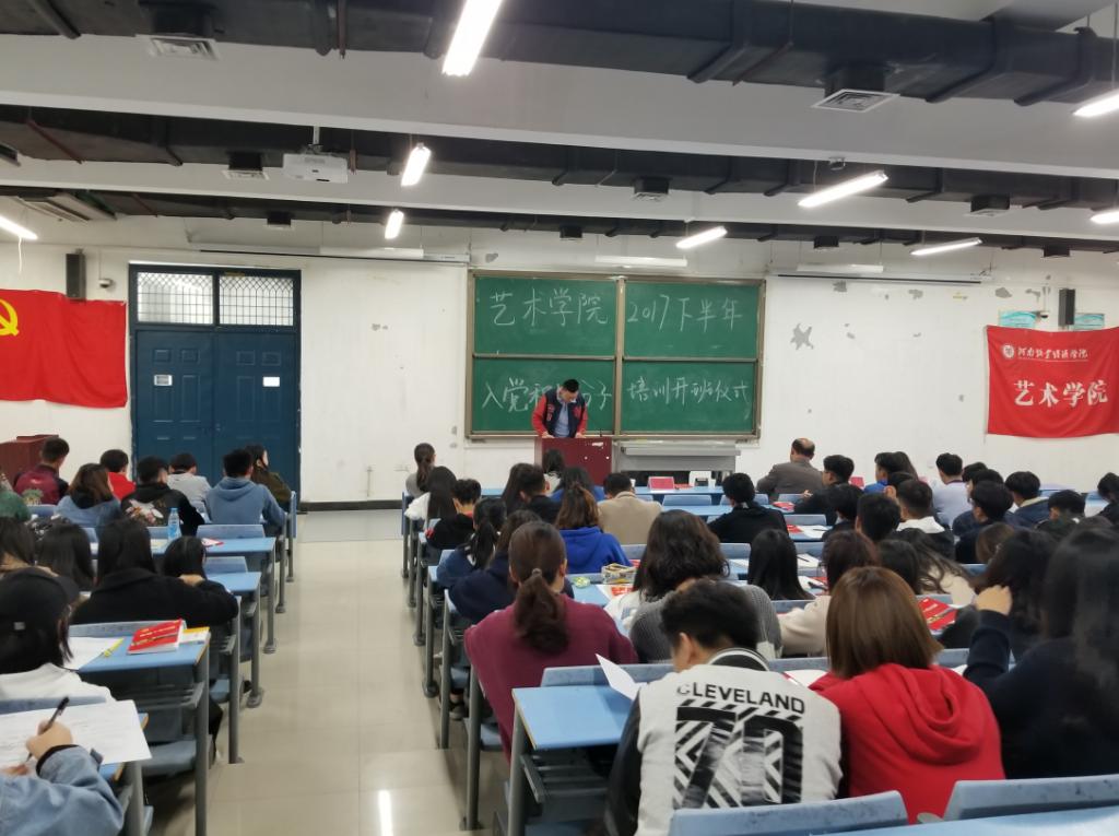 2017年10月30日太阳集团tyc4633在龙子湖校区1号教学楼合400教室举行2017下半年入党积极分子培训班开班仪式。太阳集团tyc4633党总支书记王在钦、党总支副书记贾艳艳、学生党支部书记王备、学生党支部宣传委员孟星星、学生党支部组织委员卢晓靖出席了此次仪式,本次培训班的182名学员也全部参加了本次开班仪式。本次开班仪式由我院党总支副书记贾艳艳主持。