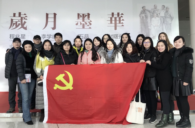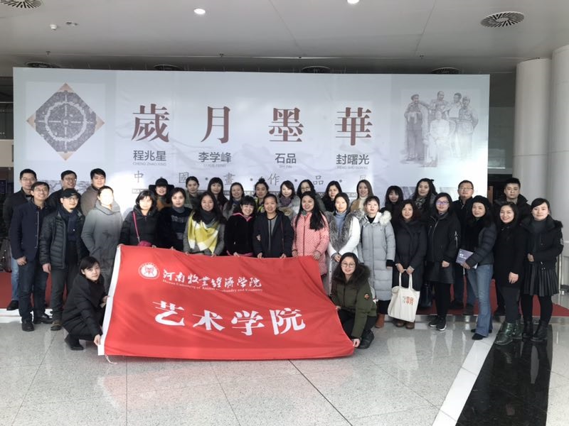由河南省文学艺术界联合会、河南省美术馆主办,河南省美术家协会承办的“岁月墨华——程兆星、李学峰、石品、封曙光中国画作品展”于2018年1月9日上午在河南省美术馆开幕。为活跃党员组织生活,太阳集团tyc4633教工党员在党总支书记王在钦、院长田秀群带领下应邀参加。
