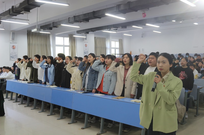 2021年4月17日,太阳集团tyc4633在龙子湖校区1号楼300教室隆重举行太阳集团tyc4633新党员宣誓仪式。学院党委书记王在钦、党委副书记王友峰、学生第一党支部书记韩飞、组织委员屈普、宣传委员王梦如;学生第二党支部书记卢晓靖、组织委员王霜、宣传委员孟星星及辅导员李绅出席本次活动。同时观摩本次宣誓仪式的还有全院所有的学生正式党员、预备党员、本期的58名发展对象和本期150名积极分子,本次仪式由韩飞老师主持。