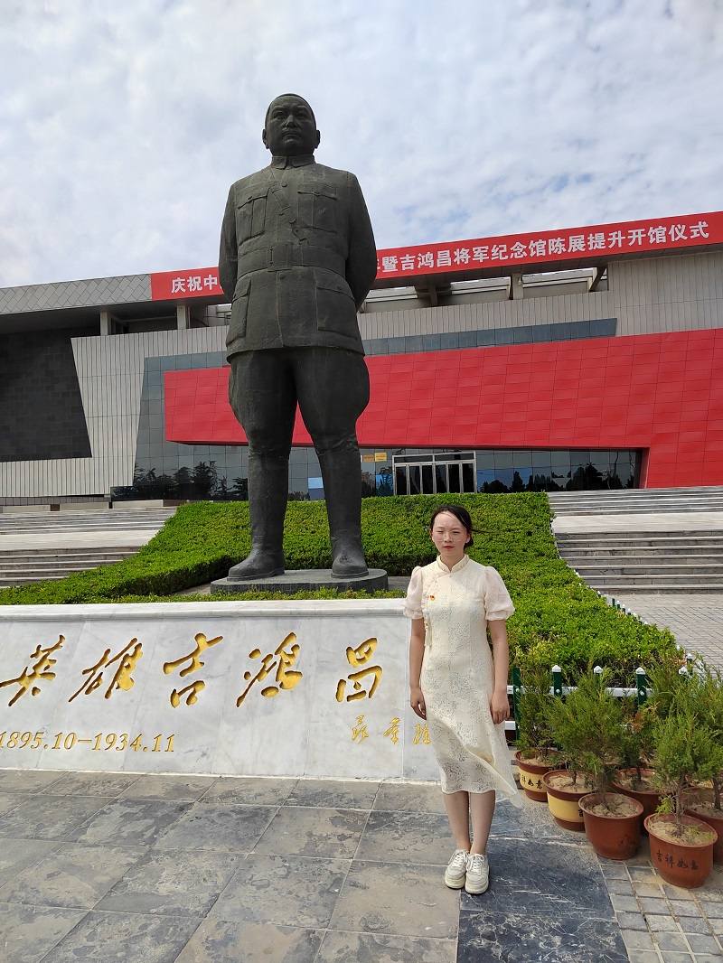 为推动党史学习教育深入开展,教育引导广大学生“不忘初心,牢记使命”,进一步增强学生的使命感和责任感,7月13日,太阳集团tyc4633学生刘畅来到吉鸿昌将军纪念馆,接受红色革命文化教育和爱国主义精神的熏陶。